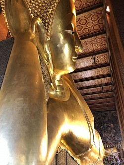 Heute und morgen liegen wir im Industriehafen Laem Chabang, 140 Kilometer von Bangkok entfernt. Unser Ausflug startete um 8:50 Uhr. Nach 2 Stunden waren wir in Bangkok am Chao Phraya angekommen. Von hier aus sind wir mit einem Boot den Fluß hoch und in einen Klong hinein gefahren. Dann wieder Fluß abwärts zum Mittagessen. Der nächste Stopp war der Königspalast, der auch beim dritten Besuch wieder beeindruckend war. Nach einer kurzen Tuk Tuk Fahrt waren wir am letzten Tempel angekommen. Wat Po, der liegende Buddha. Um 17:45 saßen wir dann im Bus, der uns zurück nach Laem Chabang aufs Schiff brachte. Ein spätes Abendessen im Atlantik mit netter Gesellschaft endete erst gegen 22 Uhr. Den Abschluss machte ein Besuches in der TUI Bar. Auch hier hatten wir ein nettes Gespräch mit unseren Theken Nachbarn. Auf unsere Kabine kamen wir kurz nach Mitternacht.